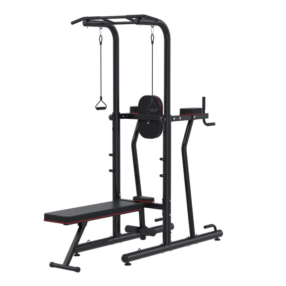 ★功能:多位单杠引体向上,拉力绳助力引体向上,俯卧撑,双杠屈伸,双杠收腹提腿,仰卧起坐,哑铃平凳,平卧推胸,多位拉力绳等功能 ★主管材规格:76圆管 ★占地面积:2000×1060×2200mm ★包装尺寸:1580×550×195mm ★净重/毛重:47/52KGS