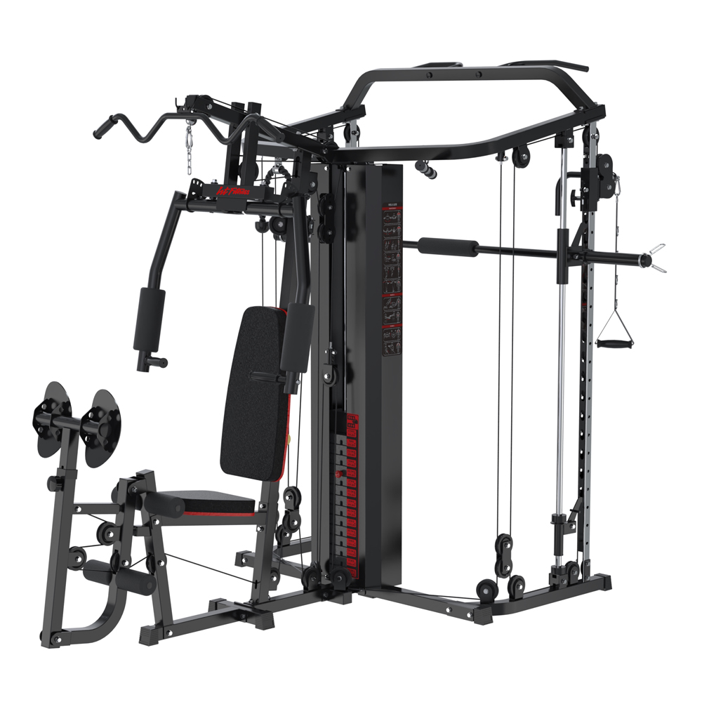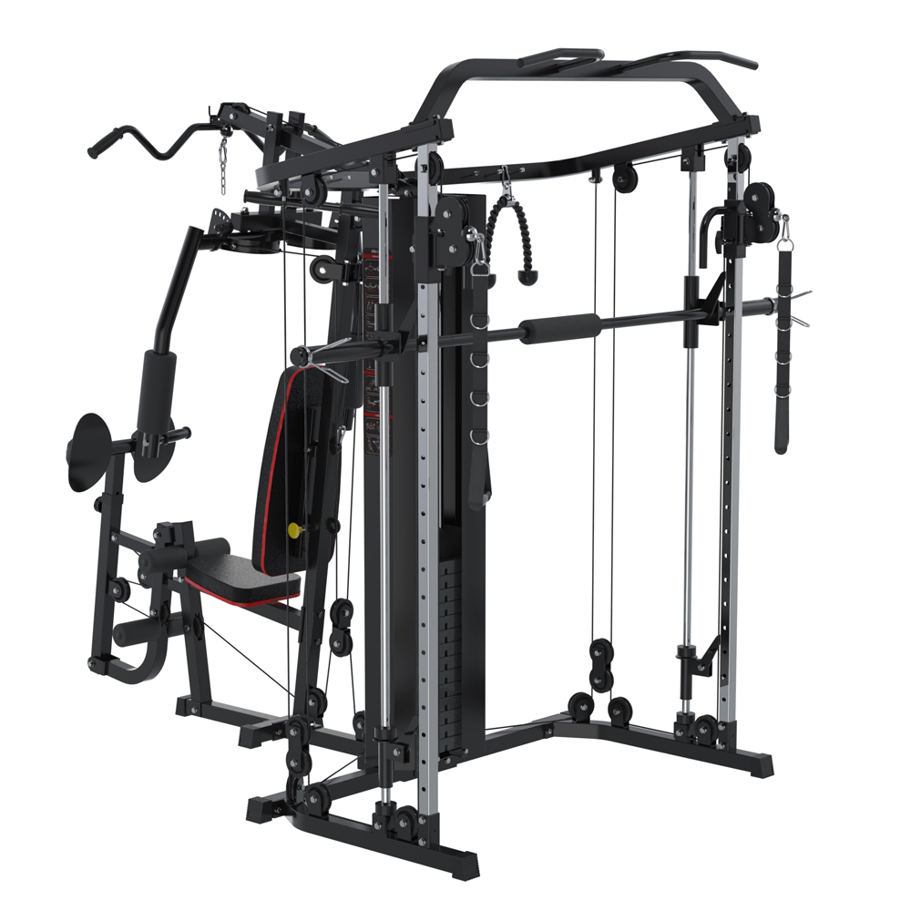 ★功能:飞鸟十字夹胸、双位拉力器训练、史密斯深蹲训练、小腿提踵训练、蝴蝶夹胸、坐姿推胸、坐姿大腿伸展、坐姿划船、高拉背肌训练、站姿肱三头肌练习、站姿肱二头肌练习、坐姿蹬腿、坐姿划船、低位划船、多位单杠、及小飞鸟多功能拉力复合训练等等